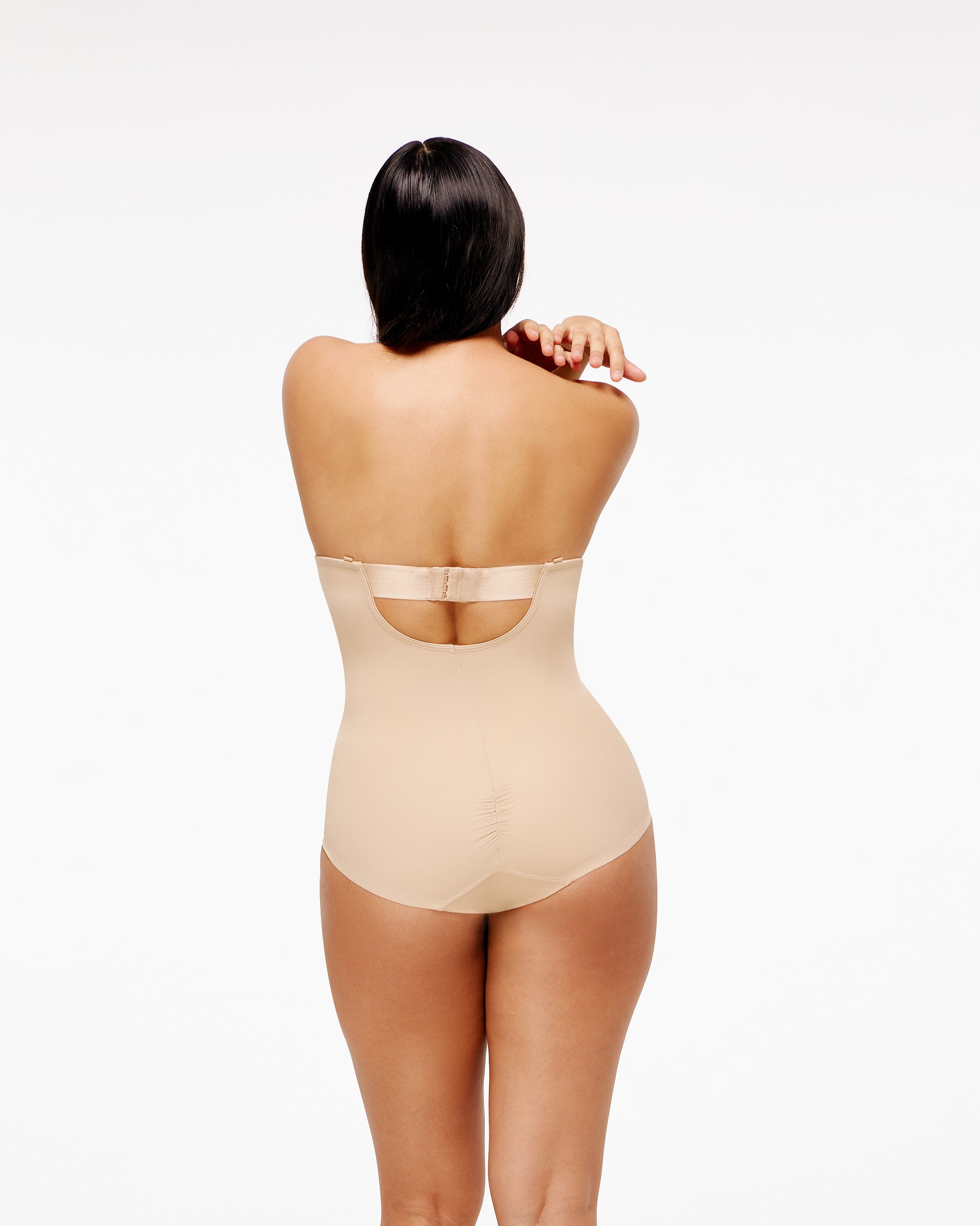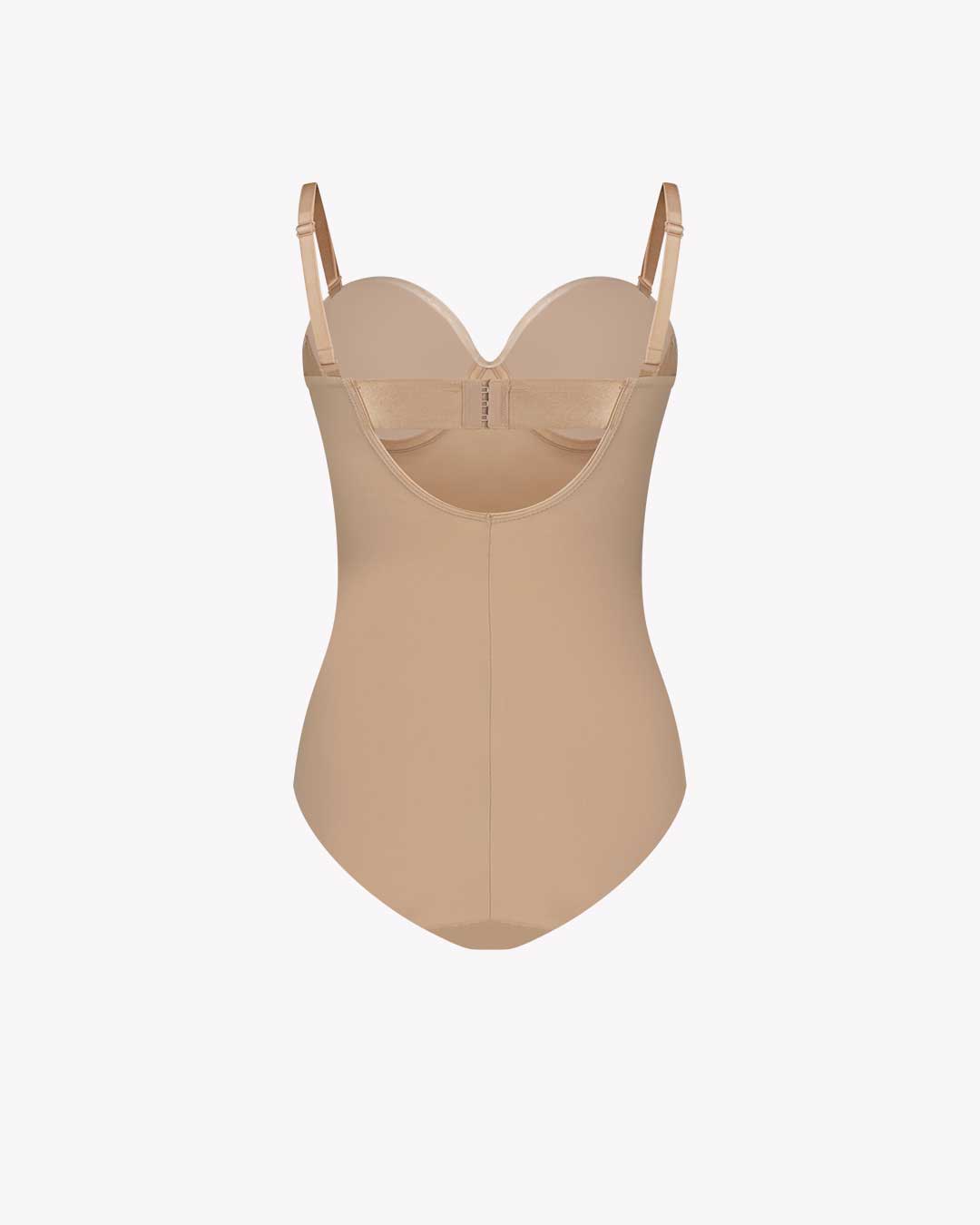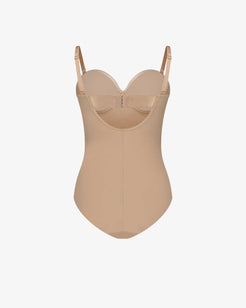The ultimate for sculpting bodysuit comes with integrated wired bra and convertible strap. The high leg bodysuit also features a crotch snap to make it easy to take on and off.